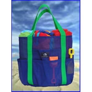 Review: Parents Magazine, Quick and Simple Magazine, July 2007. "Give it a shake at the end of the day and sand comes out easily" "The search is over for the ultimate beach bag... (9) pockets for all your beachcombing needs..." The Whale Bag from Saltwater Canvas is our best-selling family bag. Perfect for an easy day at the beach, vacation, for scuba and snorkeling, camping trips, coaching, a last minute picnic, storage, college laundry . . . and more. This fully waterproof mesh bag stands up by itself, & squashes for easy storage. It will stand upright in the car, and the doubled polypropylene straps go from top to bottom to hold any load. The Whale Bag holds up to 6 beach towels, with room for toys, sunscreen, or your juicy novel in all the pockets. The oval shape is about 15 inches across, and 15 inches tall. 8 puffed out pockets hold everything you need. The mesh lets you see it all. Organized at last! An inside snap hook holds keys or sunglasses safely. Machine-washable, or simply rinse the product in water to clean.